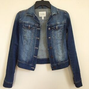 Jessica Simpson Pixie Cropped Light Weight Point Collar Blue Denim Jean Jacket