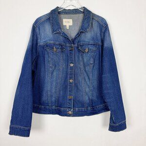 Jessica Simpson Pixie Denim Jean Jacket Women's Size 2X Dark Blue Wash Stretch