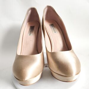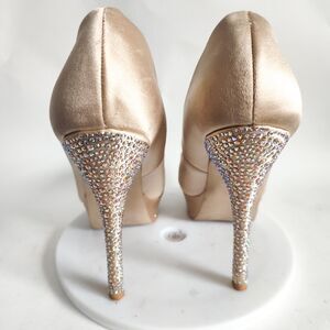 Jessica Simpson Platform Heels Size 10 Champagne Shiny Rhinestones Formal Pumps