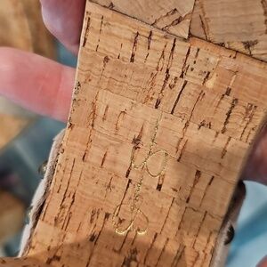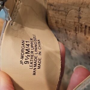 Elevate your style with these chic beige sandals featuring a comfortable cork heel. Perfect for any occasion. In good condition worn minimally. JP Morgani's