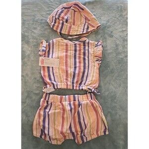Jessica Simpson Playsuit Baby Girl 3/6 Mo Pink Stripe 3 piece includes hat