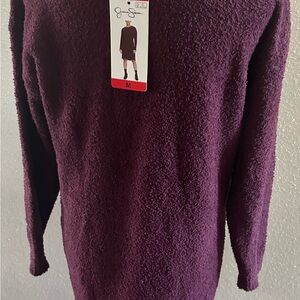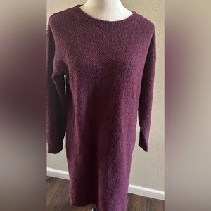 Cozy plum sweater dress with a textured knit design. Perfect for cool weather.