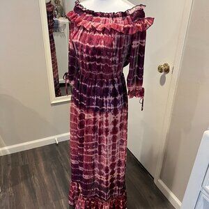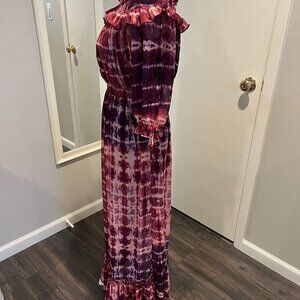 Jessica Simpson Plum Tie Dye off shoulder maxi dress, Size Small