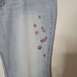 Jessica Simpson Plus Size Light Wash Flared Jeans With Floral Embroidery & Pocke