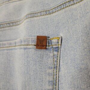 These jeans offer a light wash denim with charming floral embroidery details. Flared leg design adds a retro-inspired touch, suitable for casual wear.