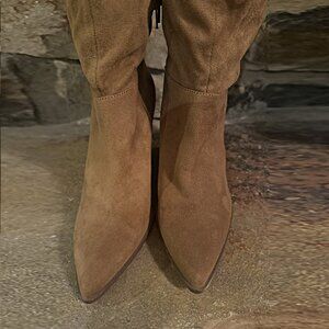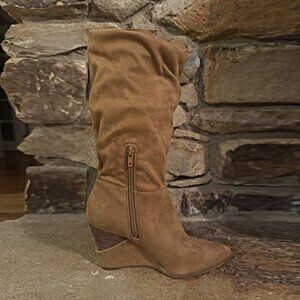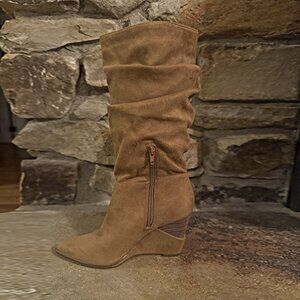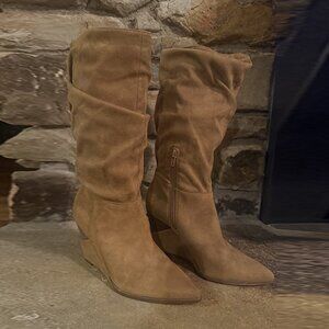 Jessica Simpson Pull On Helveta Slouch Wedge Boots Tan Suede Pointed Toe Size 7
