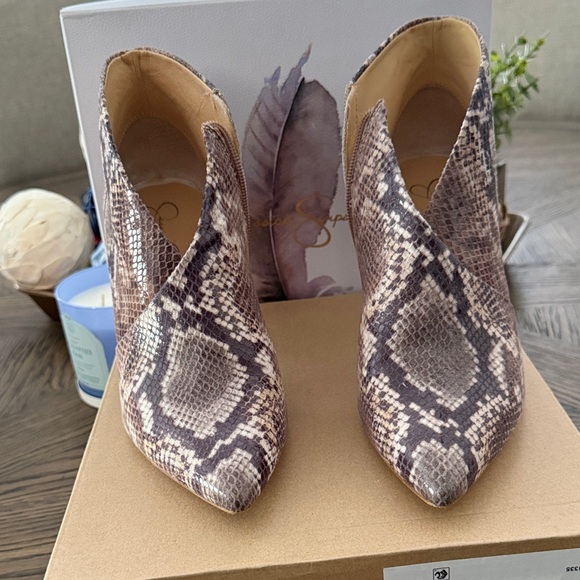 Chic python print design. Pointed toe style. Versatile and trendy. Heel approximately 3.5 inch