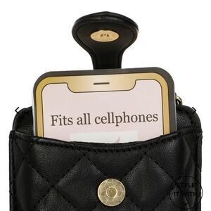 Introducing our Quilted Cellphone Crossbody Bag, a stylish and practical accessory for your everyday needs. This bag features a chic faux leather exterior and a luxurious gold chain crossbody strap, combining elegance with functionality. It includes a snap button pocket for your cell phone, a snap button card holder, and a zip pocket for added security. Measuring 7 inches by 4 inches, it's the perfect size to keep your essentials organized and easily accessible.