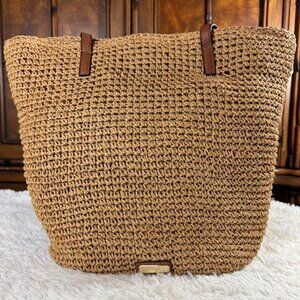 Jessica Simpson Raffia Straw 3D Beaded Floral Feather St. Pete Toast Pink Tote