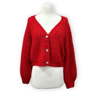 Jessica Simpson Red Cropped Wool Cardigan with Rhinestone Buttons Size Medium