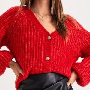 Chills has nothing on your glam vibes in this red rhinestone button-up cardigan sweater!