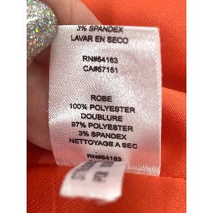 0630A- Jessica Simpson Red Fit & Flare Dress 6 Hi/Lo Midi, lined, rounded, peekaboo, Neckline, Sleeveless, with 1 inch matching belt.Blouson, Lined. 100% polyester dress. Lining: 97% polyester 3% spandex. Dry clean. Lovingly preowned. Excellent condition. 35 1/2 inches around armpits, 30 inches around the waist. Length: 36 inches approximately in the front, 47 inches in the back. Made in China.