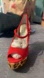 Jessica Simpson red suede open toe ankle strap heels with animal print on the bottom they are new. They’ve never been worn. They are a 6 1/2 medium they are beautiful.