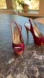 Chic red slingback heels with peep-toe design. Stylish and versatile for any event. These have signs of Ware on the inside of the shoe and scuff marks on the heels, but could easily be cleaned up.