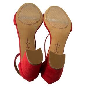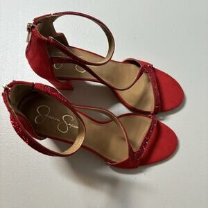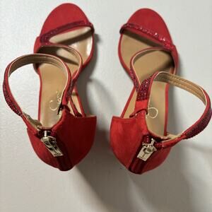 Jessica Simpson Red Suede Block Heel Sequin Strap Sandals Zipper Back Size 10