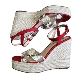 Jessica Simpson Red Velvet Floral Toe Strap Wedge Espadrilles - 8.5