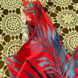 Jessica Simpson Red and Pink One Piece Swimsuit V-Neck Tie-Dye