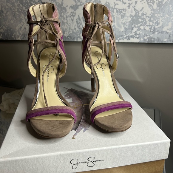 • Round-toe lace-up strappy dress sandals