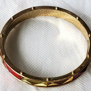 Jessica Simpson Retro Orange Yellow Rhinestone Gold Bangle Bracelet