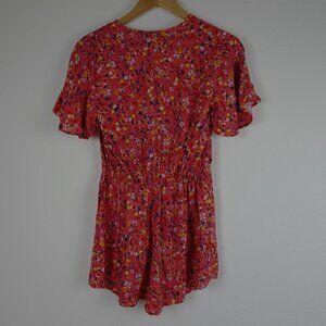 Jessica Simpson Romper Women's Size XS Orange Floral Print Flutter Sleeve