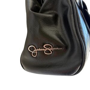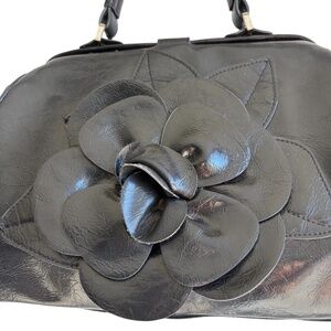 Jessica Simpson Rose Applique Black Faux Leather Medium Satchel/Top Handle