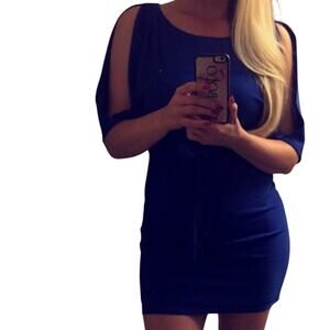 Jessica Simpson Royal Blue Split Sleeve Tie Sash Mini Cocktail Dress Small