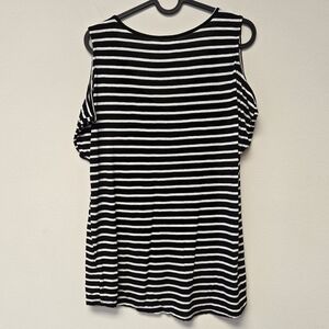 Jessica Simpson Rule Breaker Cold Shoulder Top Black Stripes M