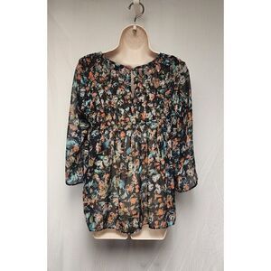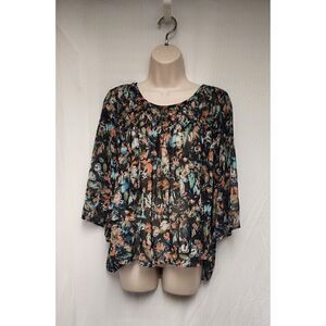 Jessica Simpson Scoop Neck 3/4 Sleeve Butterfly Peasant Multicolor Black Top Blouse Size Medium.