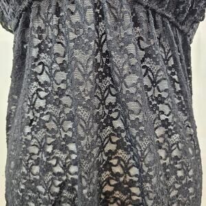 This is a cute little slip dress from Jessica Simpson that can be used as a slip or nightgown. It is made of 90% nylon and 10% Spandex in a black, stretchy, soft lace. Women's Size M. In EUC.