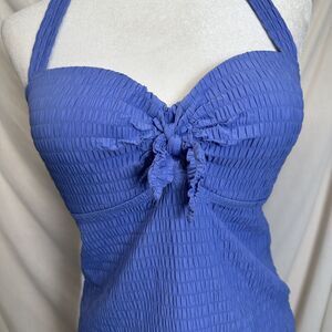 Jessica Simpson Shadow Smocked Push-up Swim Halter Tankini Top Blue Size Large