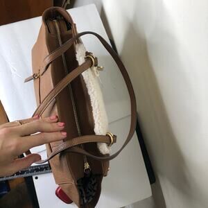 Jessica Simpson Sherpa Panel Brown Faux Leather Tote Bag Purse NWT