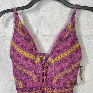 Jessica Simpson Shine Bright Lace Front 1 Piece Swimsuit Tulip Multi Medium