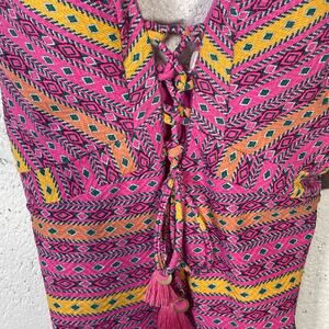 Plunging neckline with tasseled lace-up detail