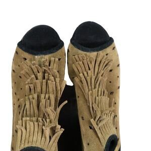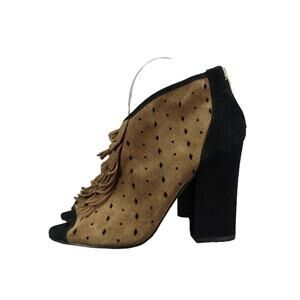 Used Jessica Simpson Shoes Womens 8.5 Bootie Fringe Open Toe Two Tone Leather Fashion