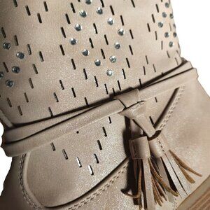 Jessica Simpson Short Cowboy Boots Beige/Tan Shiny Diamond Rhinestone Kid Size 4