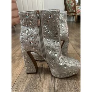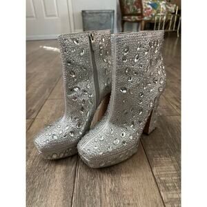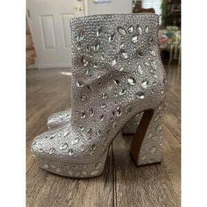 Jessica Simpson Silver Dollyi Crystal Embellished Platform Ankle Bootie Size 7.5