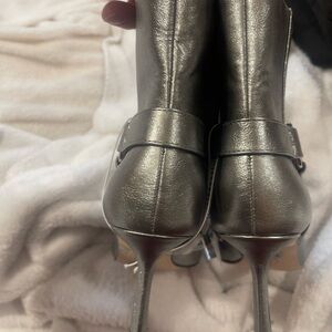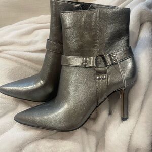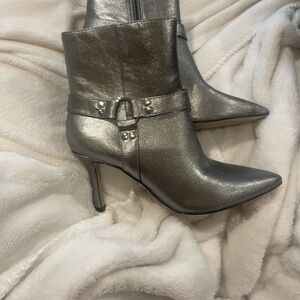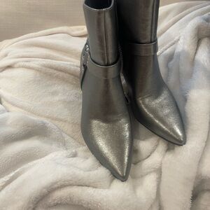 Jessica Simpson Silver Heeled Boots with Pointed Toe and Sleek Design