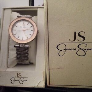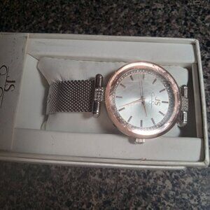 Jessica Simpson Silver & Rose Tone Crystal Accent Mesh Ladies Watch