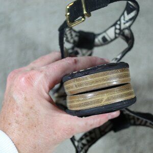 Condition - Good preowned. This is a well-loved pair of SUPER CUTE sandals that is seeking a new life with a new forever home. The studded fringe detail makes these a standout at any occasion! The structure is in great condition. There is some light superficial "cracking" on the inside of the strap and some touched up nicks along the edges but they have a LOT OF LIFE left for a good home.