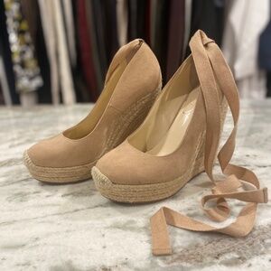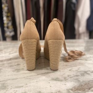 Jessica Simpson Size 7.5 Almond Supreme Microsuede 6" lace up espadrilles
