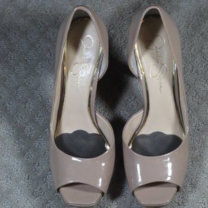 Jessica Simpson Size 9.5 Nude Patent Leather Peep Toe Heels