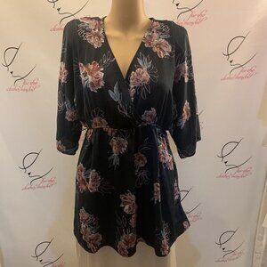 Jessica Simpson Size SP. Mini. Flared. Crossover Bodice. Elastic Waist Dress. Center back 26.5". Sleeve are cut on being 15" from shoulder. Bust 17.5/35". V-neck. Very good pre-loved condition.