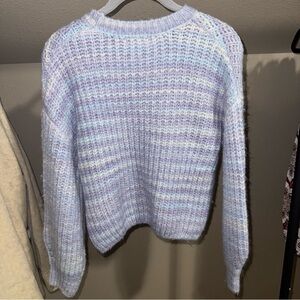 Jessica Simpson Small Pastel Purple and Blue Striped Fluffy Chunky Knit Sweater