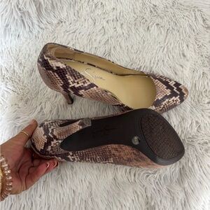 Jessica Simpson size 9 1/2 Elevate your style with these chic snakeskin patterned high heels. Perfect for any occasion, these shoes offer a bold and fashionable look.