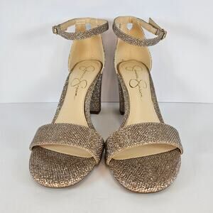 Jessica Simpson Sparkly Gold Hazzu Block Heeled Strappy Sandal Size 7.5M