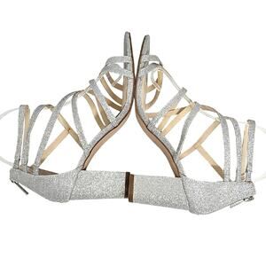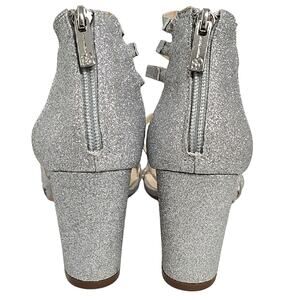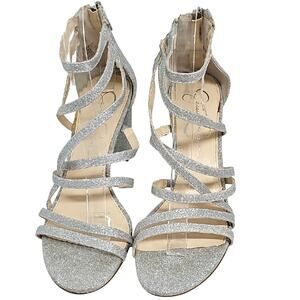 Jessica Simpson Stassey Sparkling Silver Strappy Block Heel Back Zip Sandals 8M