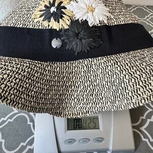 Jessica Simpson Straw Bucket Hat Cottage Core Floral Prairie Boho Garden Party