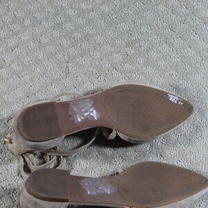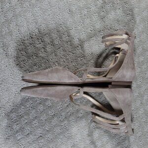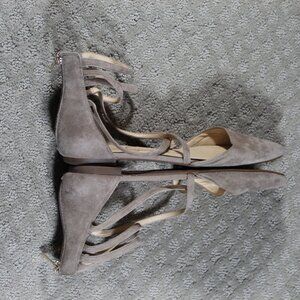Beautiful taupe suede gladiator style flats by Jessica Simpson. Excellent preowned condition - the only signs of wear are dirt stains on the soles.