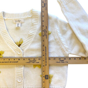 Jessica Simpson Sweater Womens Medium Cardigan Embroidered Floral White Crop