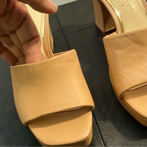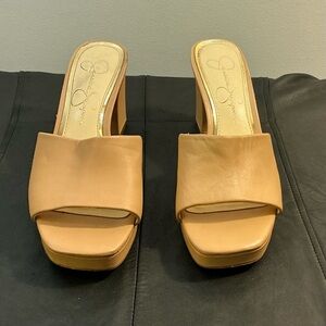 Jessica Simpson Tan Block Heel Mules – Platform Slip-On Sandals (size 6M)